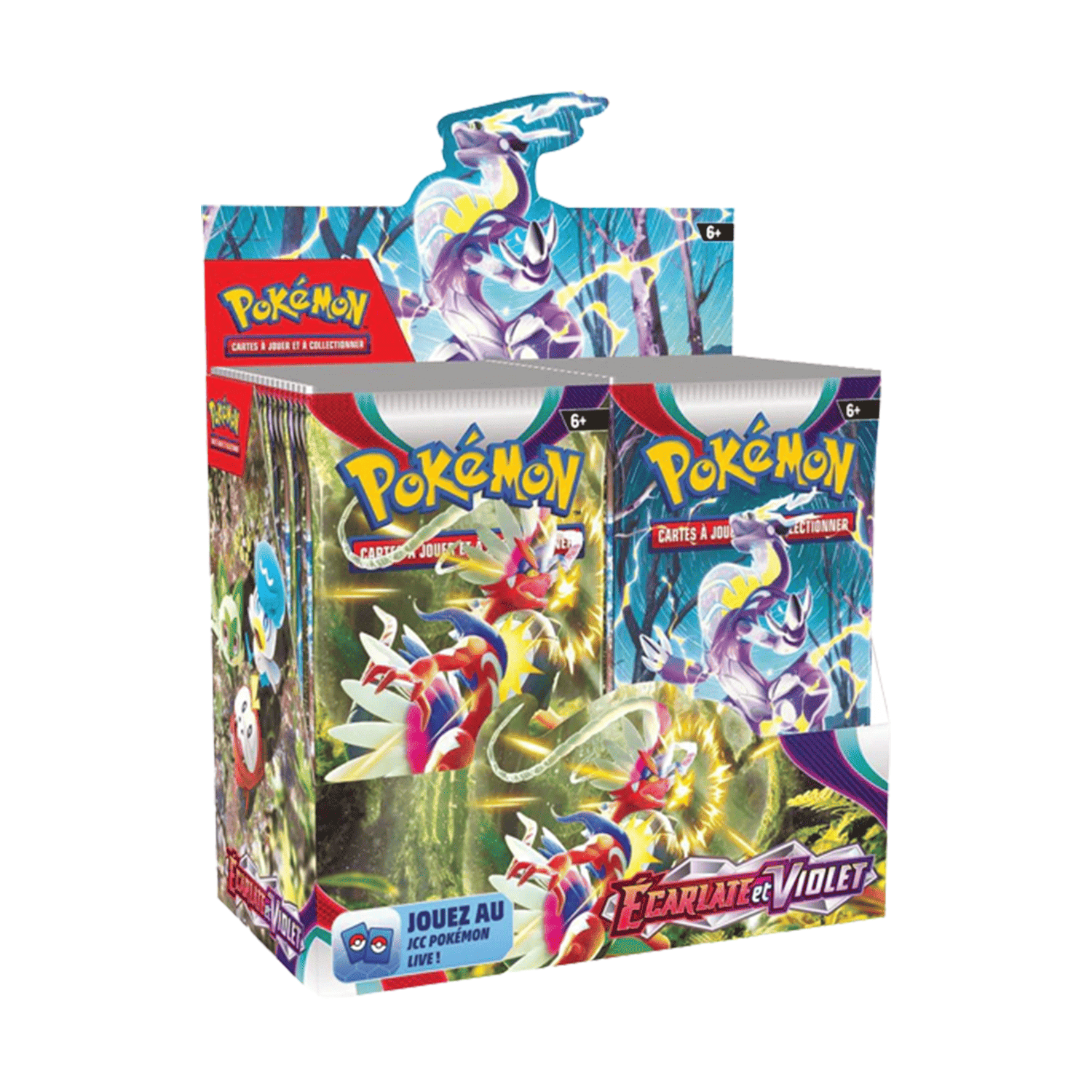 Chaque display contient : 36 Boosters Pokémon de l'édition EV01 Ecarlate et Violet